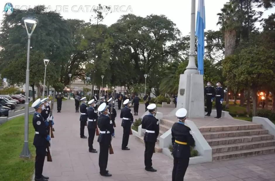 Inició a las 08 hs, cuando los alumnos Cadetes de la Escuela “Tte. Gral. Juan Domingo Perón”de la Policía la Provincia, llegaron hasta el mástil de la Plaza 25 de Mayo y realizaron el izamiento del Pabellón Nacional, entonando con gran fervor patriótico, las estrofas del Himno Nacional Argentino, interpretado por un grupo de efectivos de la Banda de Música de la Institución.