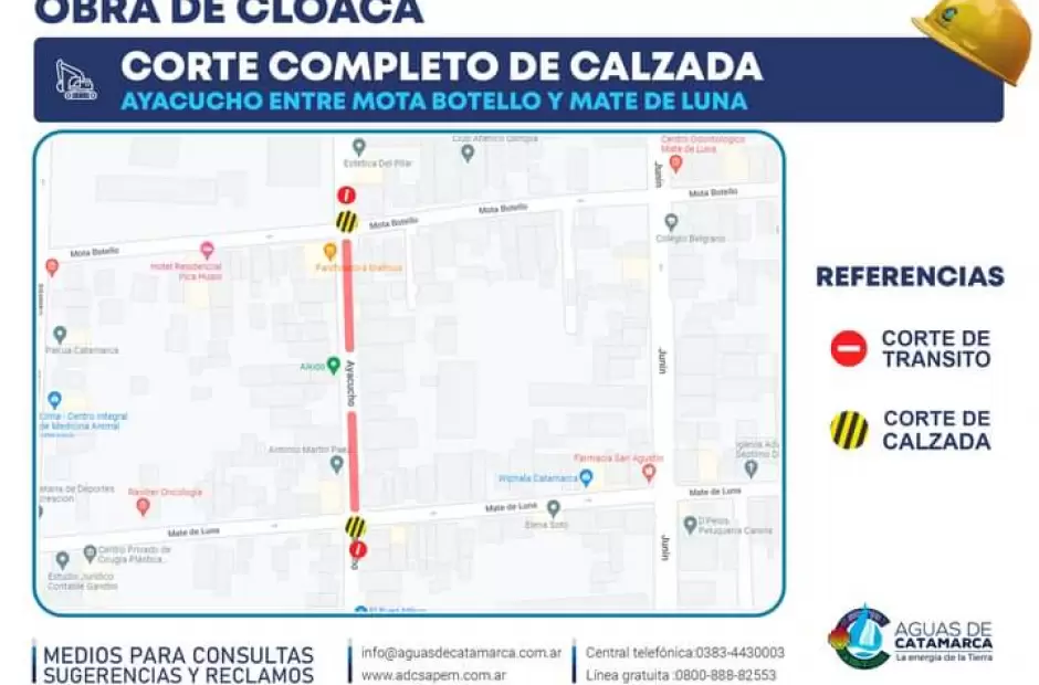 Aguas de Catamarca: corte de calles por obras de cloacas
