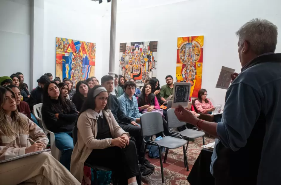 En el marco de su exposición "Cuando la tierra no es un territorio" que se exhibe en el Museo de Bellas Artes Laureano Brizuela, el reconocido artista santamariano Juan Alberto Arjona desarrolló una serie de actividades educativas y de intercambio artístico destinadas a estudiantes de distintos niveles del ISAC.