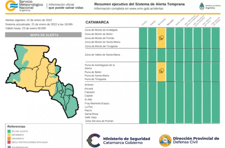 Las zonas afectadas este 22 de enero serán partes de Andalgalá, Belén, Tinogasta, Pomán y Santa María.