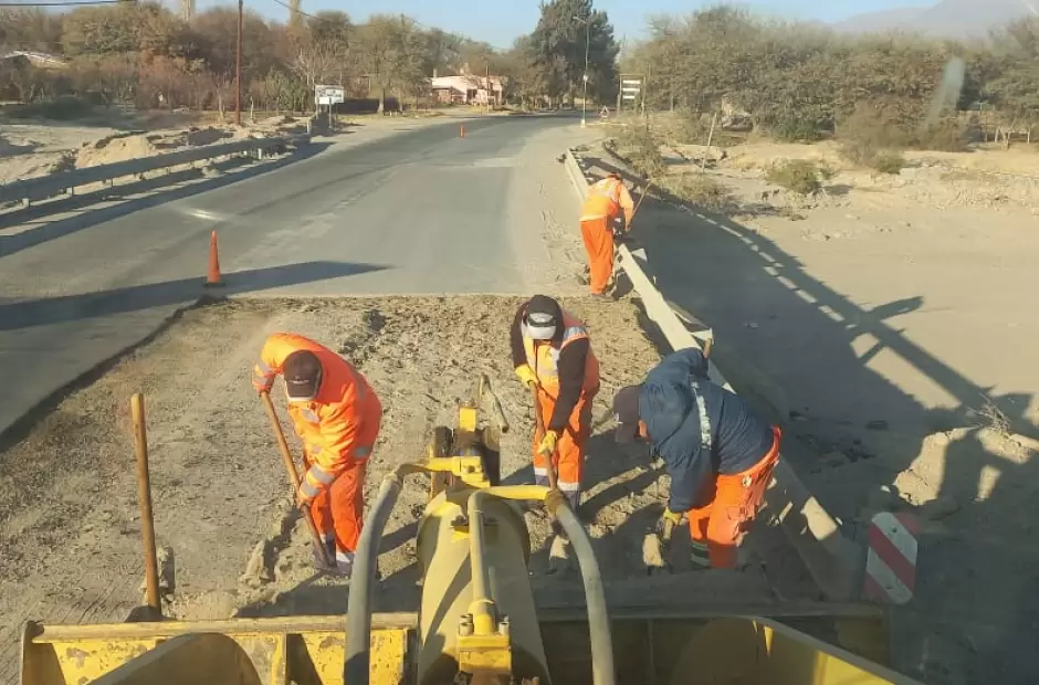 En el sector se encuentra trabajando personal de la sobrestantia de Tinogasta aportando materiales fino en calzada y labores de banquinas y, en el km 1311, se encuentra la cantera donde salen los camiones con materiales.