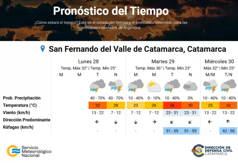El pronóstico extendido del Servicio Meteorológico Nacional, tal como lo adelantamos hoy, anuncia la llegada de tormentas para esta tarde y noche del lunes. Las chances de lluvias fuertes tienen entre un 40% y 70%.