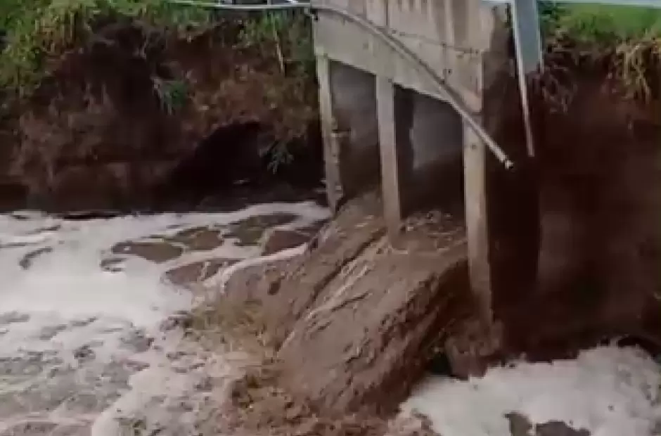 Según lo indicado, las fuertes precipitaciones, que en la madrugada ocasionaron inundaciones en el departamento Santa Rosa, ahora generaron serios desprendimiento de terraplén en la alcantarilla.