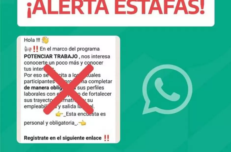 El Ministerio de Desarrollo Social emitió un comunicado ante una nueva modalidad de estafa virtual que circula mayormente por vía whatsapp. La misma está referida al Programa Potenciar Trabajo.