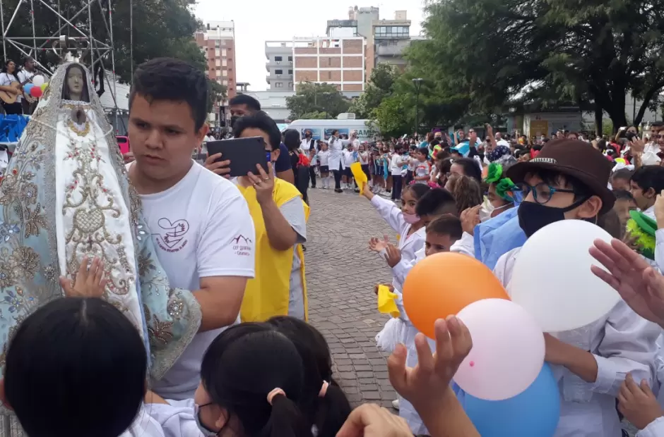 Durante la tarde del martes 26 de abril, alumnos de las escuelas primarias se reunieron en el Paseo de la Fe para rendirle homenaje a la Madre del Valle, en el marco del Septenario en su honor.