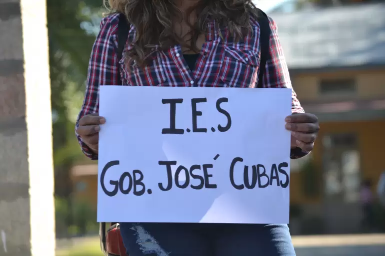 Alumnos de la primera promoción de la carrera de Enfermería del Instituto de Educación Superior (IES) Gobernador José Cubas se manifestaron este martes frente al CAPE, para reclamar que haya concurso docente para poder cursar.