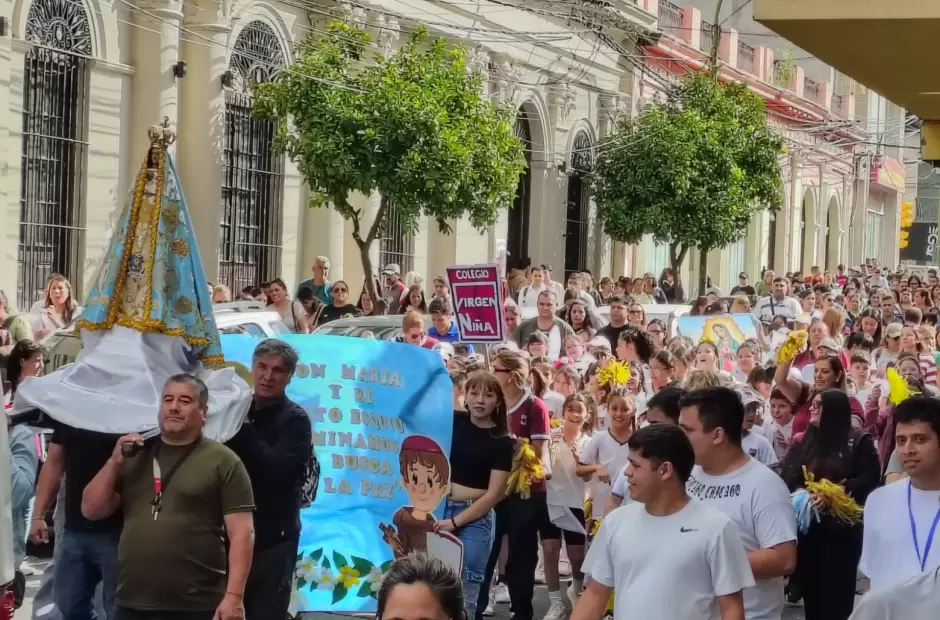 La convocatoria reunió a estudiantes de numerosas instituciones educativas confesionales, que se sumaron con sus comunidades escolares para rendir homenaje a la Madre del Valle.