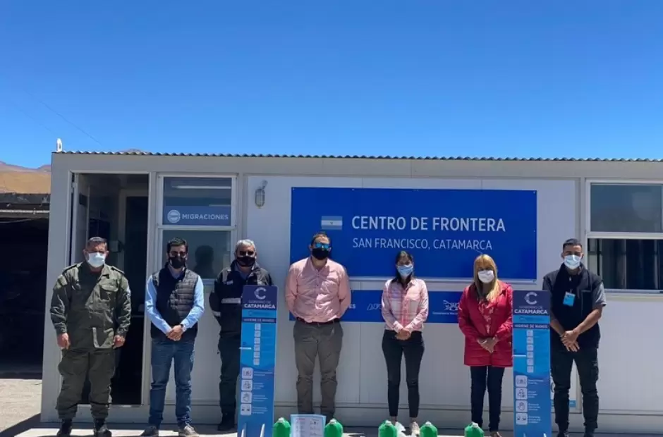 Para ello, en el marco de la emergencia sanitaria por la pandemia de COVID-19, la Municipalidad de Tinogasta procedió a la desinfección y labores de sanitización correspondientes del puesto del control fronterizo Las Grutas y demás dependencias que estarán en funcionamiento. A su vez, Molina, en representación del Ministerio de Inversión y Desarrollo, hizo entrega de los puntos de higiene, cartelería e insumos para emplearse durante el tiempo que estén operativos.