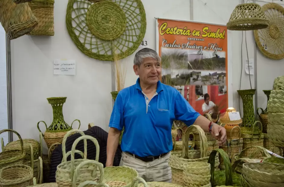 Carlos Suárez es artesano oriundo de Santa María y desde los 10 años que teje con simbol. "Me enseñó un maestro artesano, le pedí a mi mamá ir a aprender con él y éramos como treinta en su casa aprendiendo. Él además de enseñarme a tejer en simbol me enseñó a transmitir esto, y hoy mis hijos y hasta mi nieto tejen en simbol; es lindo ver que nuestras tradiciones continúen", recordó.