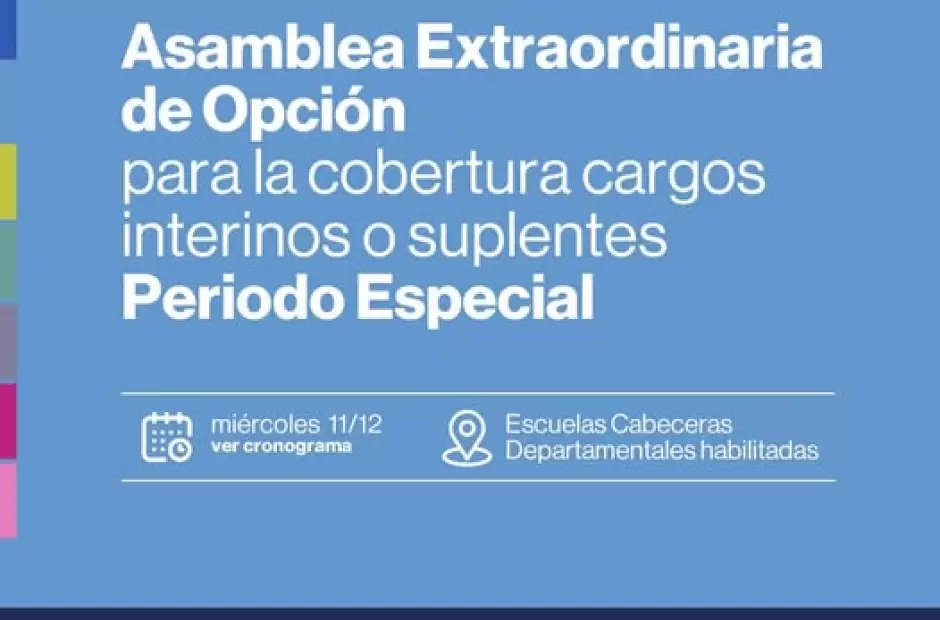 A través de la Secretaría de Gestión Educativa, comunicamos que por Resolución SGE (ME) N°168/2024 se autoriza la realización de la Asamblea Extraordinaria de Opción para la cobertura de cargos interinos o suplentes para periodo especial,