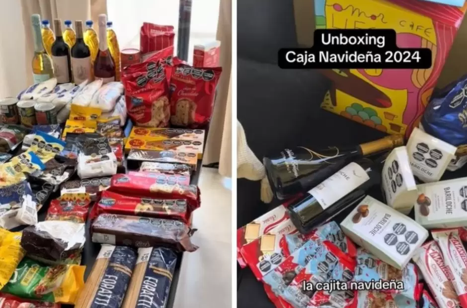 A su vez, en otros videos de diferentes internautas se observan adentro de las cajas navideñas productos de electrónica como auriculares y parlantes; utensilios de cocina, como ollas y sartenes; embutidos; quesos; papas fritas; alfajores; barras de cereal; frutos secos; y bebidas gasificadas y alcohólicas.