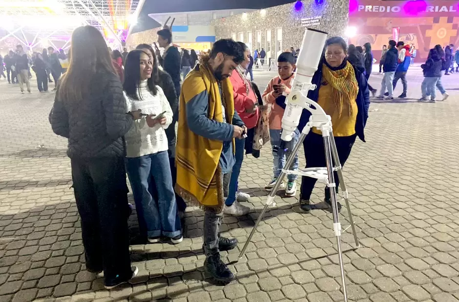 Durante los días de Poncho, en el ingreso del predio ferial, Nelson Palavecino se ocupa de esta tarea. El es guía idóneo, estudiante de la Tecnicatura en Turismo, capacitado en el Instituto Latinoamericano de Turismo Astronómico y el Observatorio Astronómico Magaquiano, emprendimiento privado pionero e impulsor de esta clase de iniciativas en la provincia.
