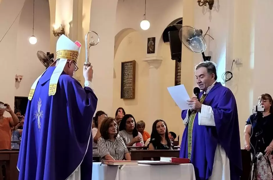 La ceremonia litúrgica fue presidida por el obispo diocesano, Mons. Luis Urbanč, y concelebrada por el padre Víctor Vizcarra, párroco saliente; el padre Dardo Olivera, quien este lunes tomará posesión de la parroquia San José Obrero; y el padre Juan Manuel Romero López, quien acompañará la tarea pastoral del padre Carlos en este nuevo destino.