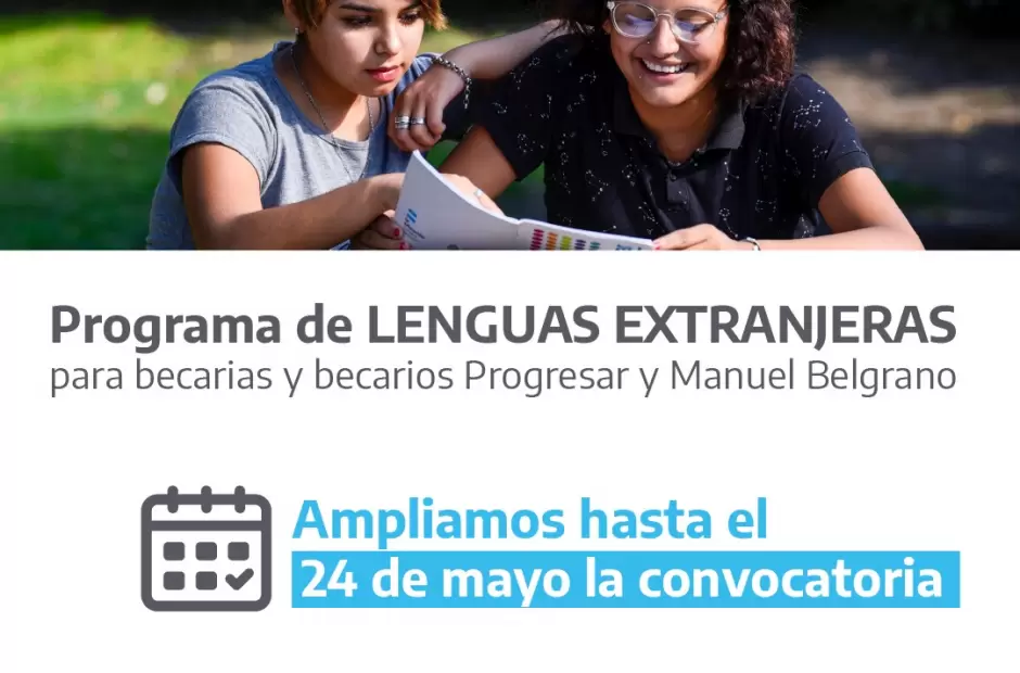 La cartera educativa local informó a becarios del programa Progresar y Manuel Belgrano, que se encuentra abierta hasta el miércoles 24 de mayo, la inscripción para formar parte del Programa de Formación y Certificación en Lenguas Extranjeras. Para participar en el mismo, los interesados deberán ingresar con usuario y contraseña en las plataformas mencionadas anteriormente.
