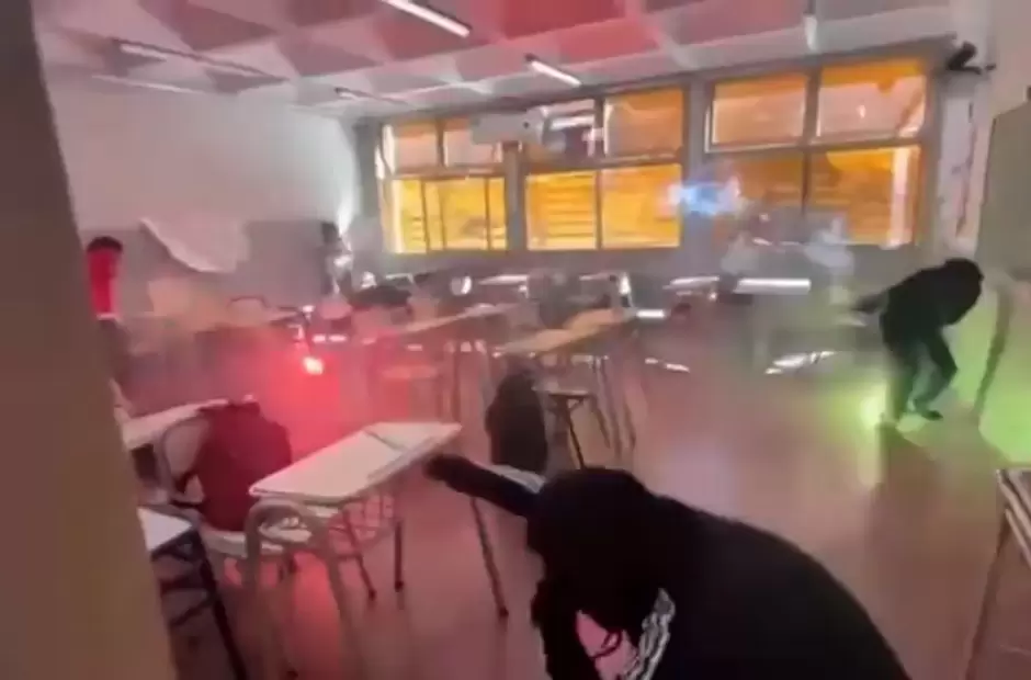 El episodio tuvo lugar en la Escuela Secundaria N°8 Gobernador José Cubas, ubicada en la localidad de San Isidro, en el departamento Valle Viejo. La filmación, que comenzó a circular la semana pasada, muestra el momento en que varios alumnos se encuentran distribuidos en distintos sectores del aula y comienzan a "dispararse" bengalas entre sí, en una situación que combinó imprudencia, sorpresa y un evidente riesgo para todos los presentes.
