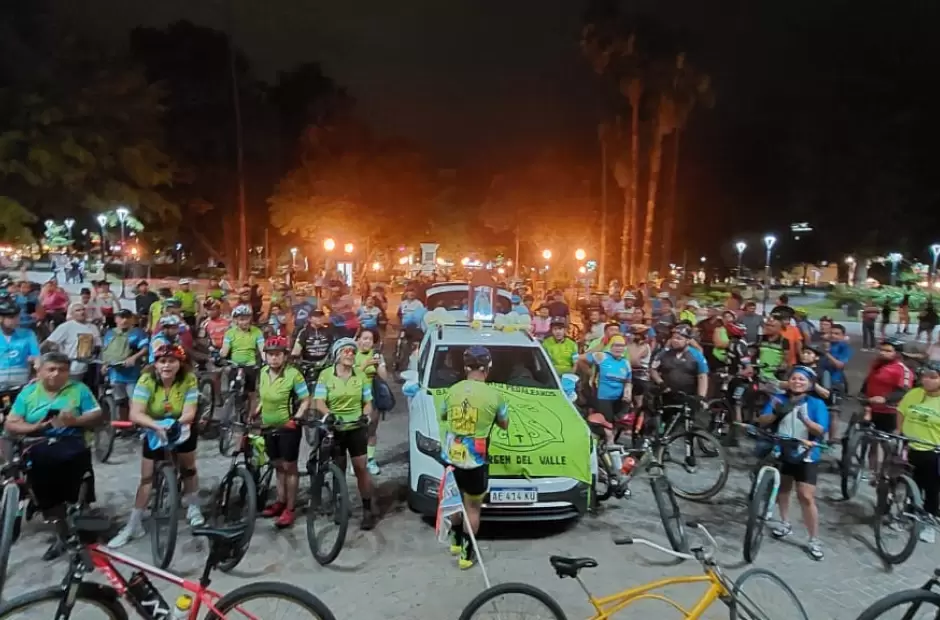 Con la participación de un importante número de ciclistas, la travesía se inició en horas de la tarde desde el monumento a la Virgen ubicado a la vera de la ruta nacional N° 38, en el ingreso a la localidad de Santa Cruz, departamento Valle Viejo.