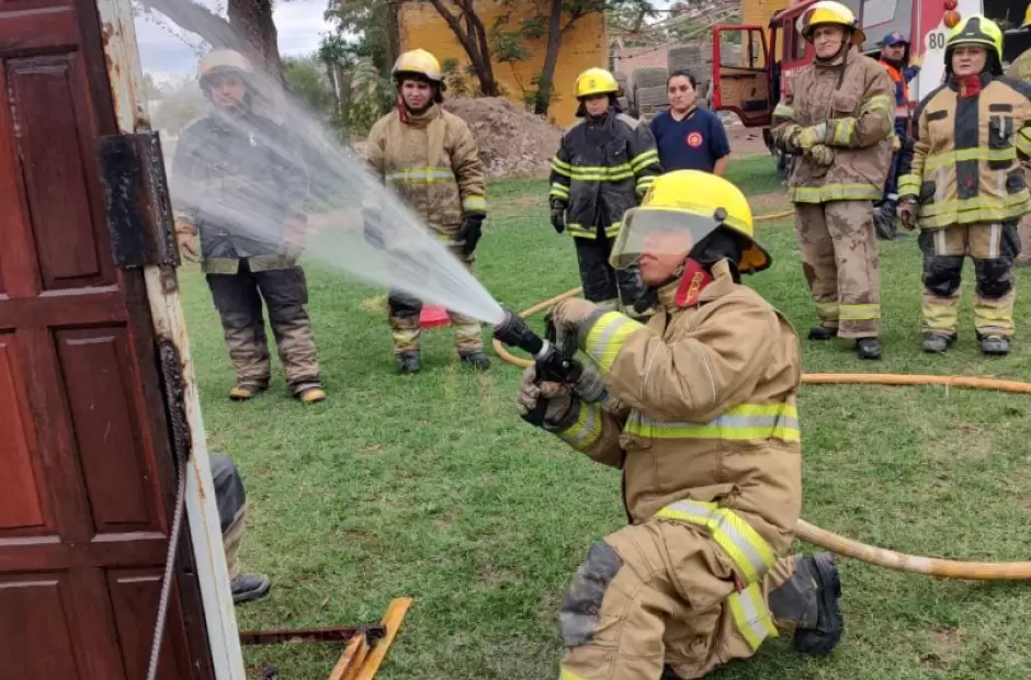 Las jornadas se llevaron a cabo durante sábado y domingo en el Centro de Integración Comunitario (ex Malbrán) en las que los instructores Osvaldo Trógolo (Santiago del Estero) y Franco Israel (Jujuy), dictaron formación teórica y práctica  sobre las técnicas básicas para el manejo de un incendio en una estructura, preparación y uso del equipo de protección personal (EPP) y respiratorio (ERA), ventilación, búsqueda y rescate, y el uso de agua para la extinción, entre otros temas.