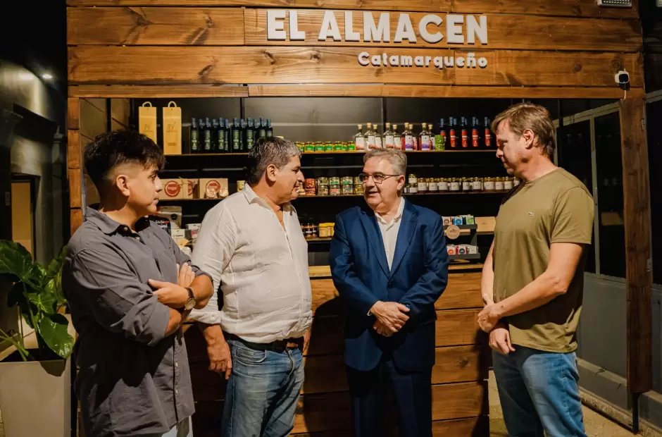 El gobernador Raúl Jalil, junto al ministro de Industria, Comercio y Empleo, Sebastián Caria, acompañaron la apertura del espacioso y bien ornamentado local, que, además de los salones y patio destinados al restorán, cuenta con un almacén con góndola de productos catamarqueños, en el marco del programa que impulsa la cartera mencionada.