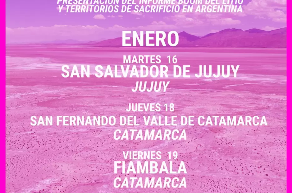 El audiovisual estará acompañado de un informe sobre el impacto de la extracción del litio en las comunidades. Las actividades son parte de un proyecto “Vulneraciones en origen del litio y derechos humanos en la compra pública de vehículos eléctricos” es un proyecto coordinado por alterNativa Intercanvi amb Pobles Indígenes, organización de Barcelona, con el apoyo del Ayuntamiento de Barcelona.
