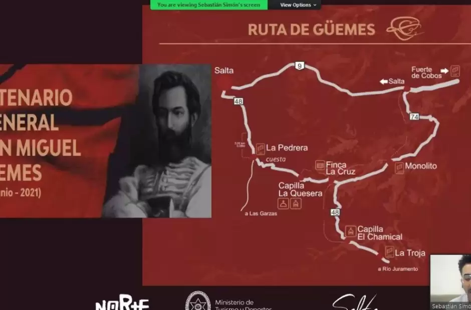 A su turno, el director de Turismo en Casa de Salta, Sebastián Simón, realizó un destacado repaso de las actividades que se llevan a cabo los días 16 y 17 de junio de todos los años en Salta en honor a Güemes. Y resaltó la principal característica de las celebraciones: el desfile de más de 4 mil gauchos vestidos con los ponchos clásicos que bañan de rojo y negro a la ciudad y los populares y multitudinarios actos que se llevan a cabo.