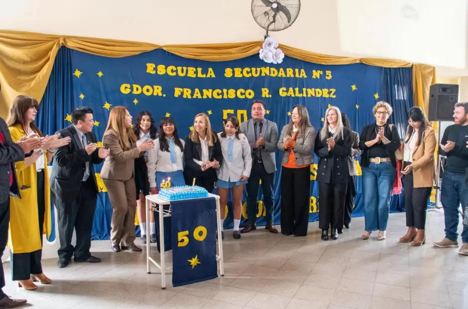 El ministerio de Educación celebró junto a la comunidad educativa de la Escuela Secundaria N°5 "Gdor Francisco Ramón Galíndez" los 50 años de vida de esta institución, la que acoge a más de 500 jóvenes en sus tres turnos.