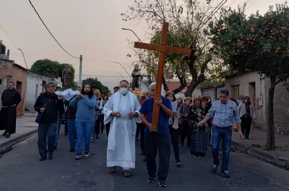 En el trayecto, que comprendió calle Almagro, avenida Italia, el Parque Lineal pasando 9 de Julio, luego sede parroquial, se rezaron los misterios del Santo Rosario y se entonaron alegres canciones. Algunos vecinos colocaron altares para honrar al santo patrono. El tañido de las campanas anunciaba el arribo de las sagradas imágenes al templo parroquial, donde luego se celebró la Santa Misa.
