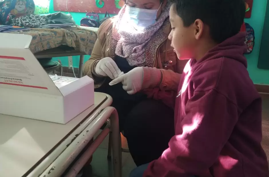 La muestra se toma por punción del dedo; en el caso de los niños de acuerdo a los requisitos de la libreta sanitaria infanto juvenil. Además, es obligatoria la realización y notificación del diagnóstico a toda persona gestante durante el embarazo, en el caso de resultar positivo el análisis, también debe ser diagnosticado el bebe.