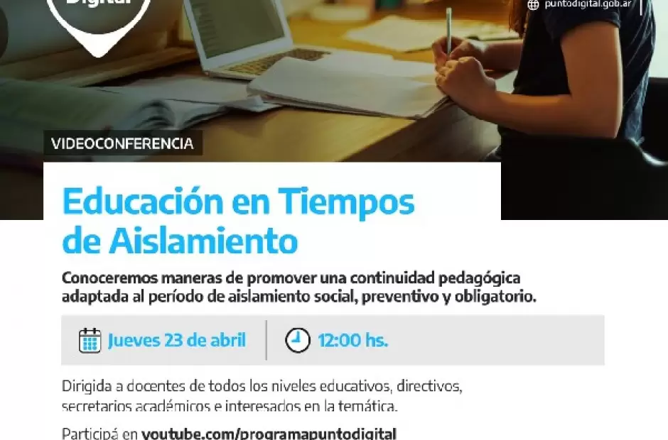 La Secretaría de Gobierno y Coordinación invita a todos los docentes a participar en la videoconferencia Educación en Tiempos de Aislamiento, dirigida a los trabajadores educativos de todos los niveles mañana jueves, a las 12.