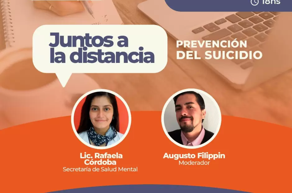 Este martes en #JuntosALaDistancia, el espacio semanal de charlas sumado por Vicegobernación a sus propuestas, invita a escuchar e intercambiar conceptos junto a la Lic. Rafaela Córdoba, valiosa profesional de la Secretaría de Salud Mental, quien abordará la "Prevención del Suicidio" como tema central del encuentro, junto a Augusto Filipín como moderador.