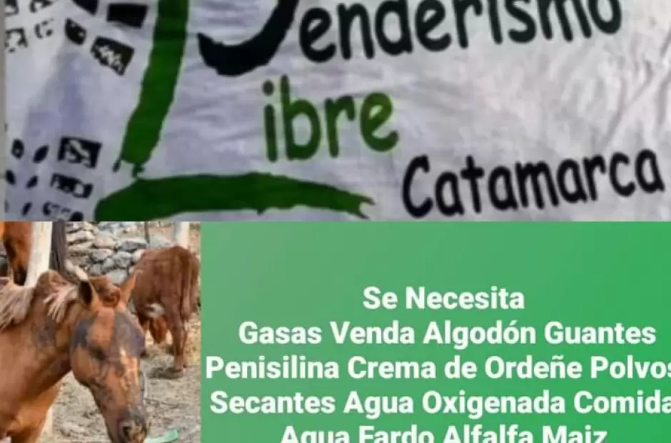 La nueva iniciativa que llegó a La Unión digital, pide colaborar con suministros y no dinero. Los amigos de Senderismo libre Catamarca buscan que se les haga llegar lo siguiente: gasas, vendas, algodón, guantes, penicilina, crema de ordeñe, polvo secante, agua oxigenada, comida, agua fardos de alfalfa y maíz. Los mismos serán entregados a los veterinarios y estudiantes de esta carrera que están preparándose para subir a realizar las curaciones a los animales afectados por los incendios en la zona del Ambato. Los que deseen colaborar, deben comunicarse con el 3834 377787 / 3834 299695 / 3834 366111.
