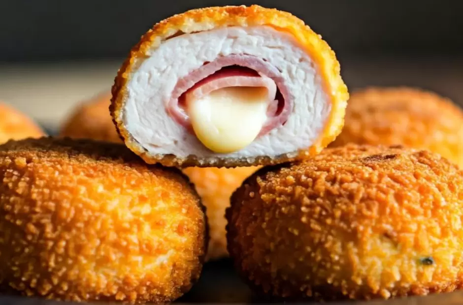 Al sumergir la croqueta en aceite caliente, se crea una capa crujiente perfecta que da paso a un centro cremoso y jugoso, con el sabor suave del pollo y el delicioso contraste del jamón y queso derretido. Al morderlas, el queso se deshace en el paladar, y el jamón le da un toque salado y sabroso que complementa la suavidad del pollo, convirtiéndola en una explosión de sabores.