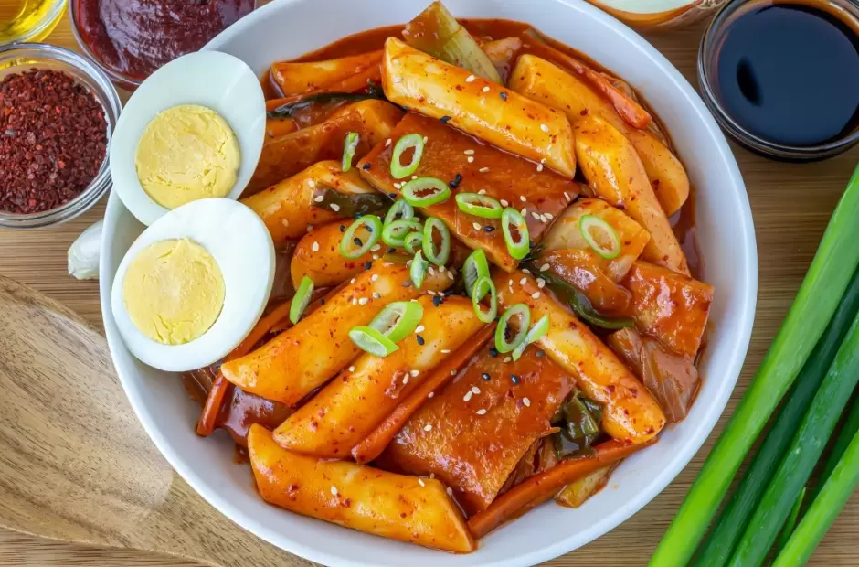 El Tteokbokki es uno de los platos más populares del hansik, y es muy consumido en Corea por su sabor picante, ideal para los días fríos. Además, es muy sencillo de hacer en casa, y como rinde para varias porciones, es perfecto para compartir con amigos o familiares. Entre sus complementos está el huevo hervido, que sirve para resaltar los sabores de esta receta.