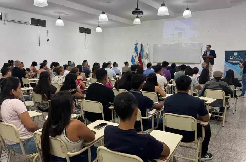 En la mañana de hoy se desarrolló el acto de apertura a un nuevo ciclo lectivo en la sede Casa Pueblo de la UNCA ubicada en Los Altos, departamento Santa Rosa. Ante un salón colmado de nuevos estudiantes se dio a conocer la apertura de la Tecnicatura Universitaria en Producción Vegetal, y Tecnicatura Universitaria en Producción Animal, ambas propuestas van a ser dictadas por la Facultad de Ciencias Agrarias.