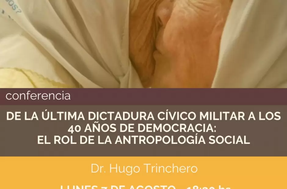En el marco de las actividades que realiza la UNCA en conmemoración a los 40 años de democracia ininterrumpida en nuestro país, la Escuela de Arqueología organiza la conferencia titulada: "De la última dictadura cívico militar a los 40 años de democracia: el rol de la Antropología Social".