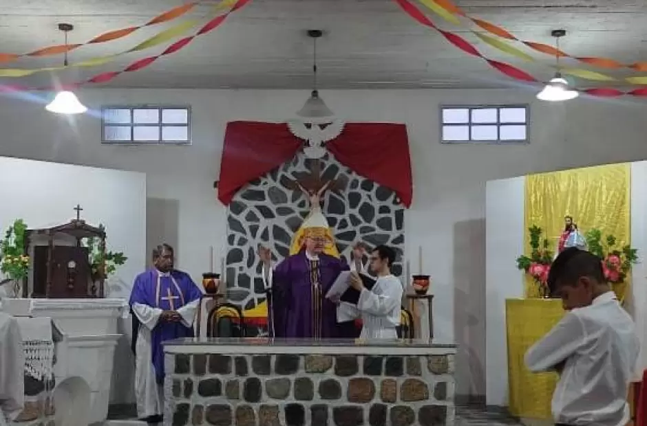 La Santa Misa fue presidida por el obispo diocesano, Mons. Luis Urbanč, y concelebrada por el párroco, presbítero Rogelio Suárez. Participaron autoridades locales y fieles de la zona.
