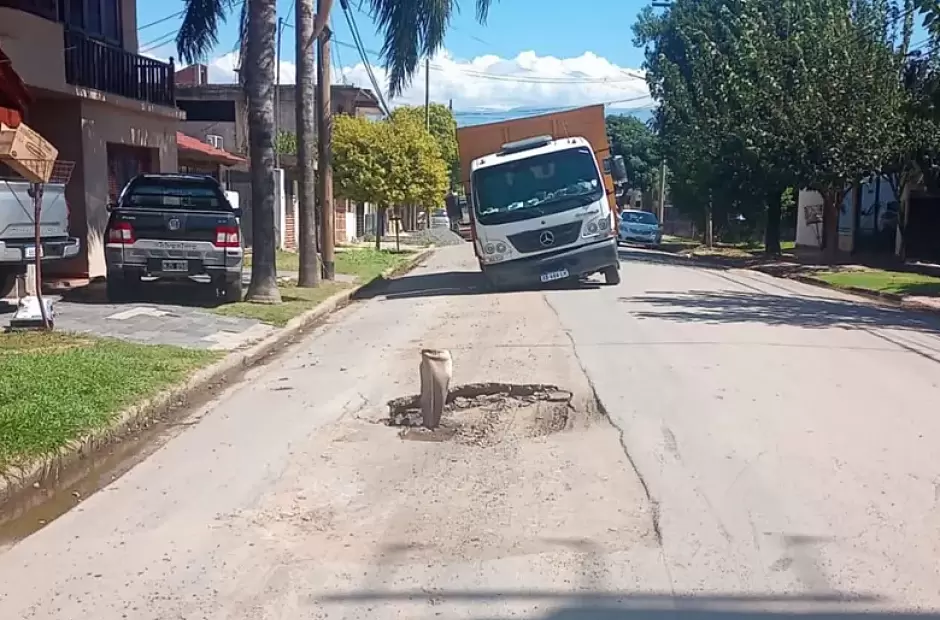 Este lunes, reclaman sobre el estado de la calle donde un camión terminó hundido este pasado viernes.