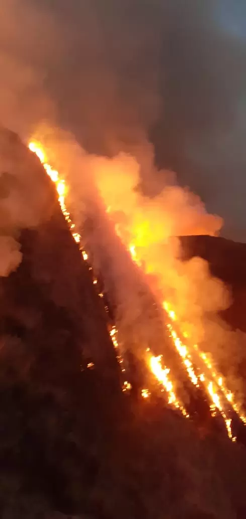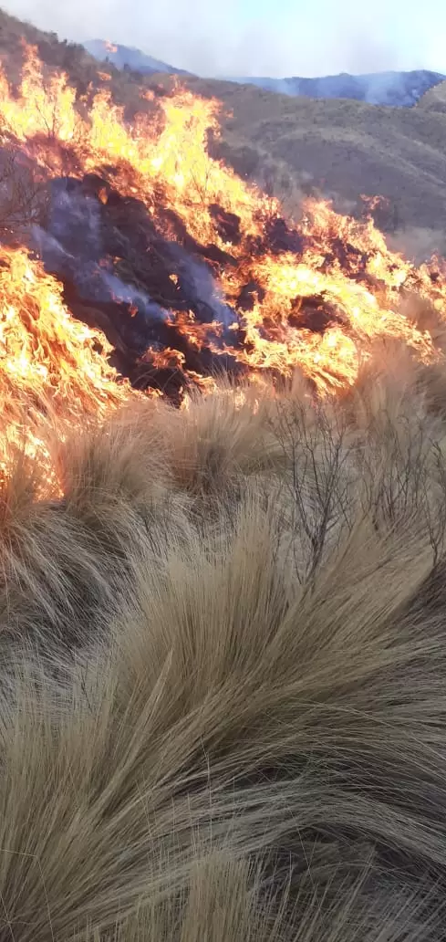 Dos cuadrillas de la Brigada de Lucha Contra Incendios Forestales de la Dirección Provincial de Defensa Civil, perteneciente al Ministerio de Seguridad, partieron el sábado para combatir el fuego en la zona de El Crestón, en la serranía del Ambato.