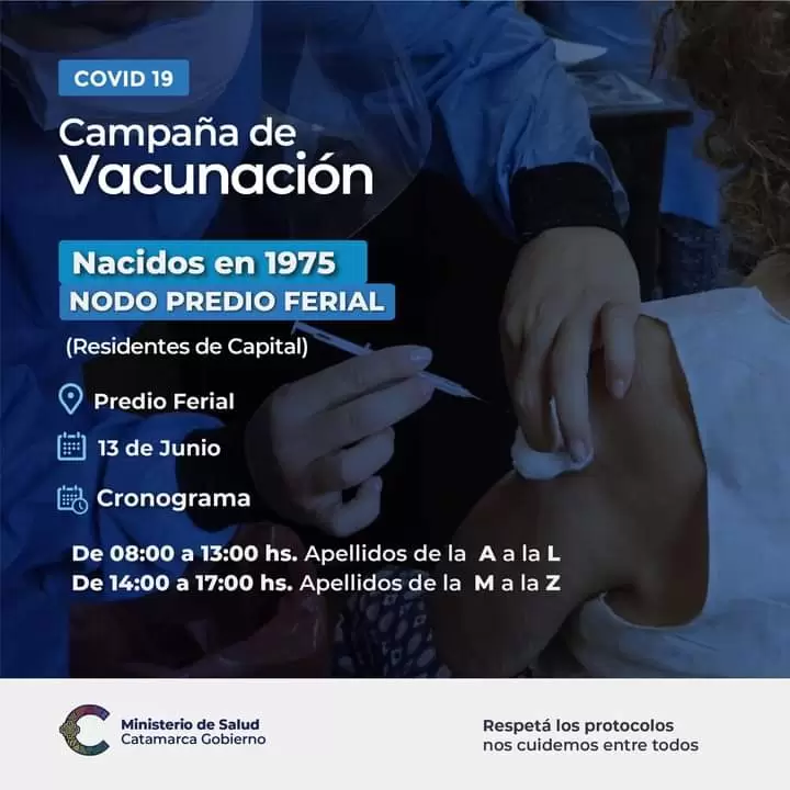 El Ministerio de Salud de la provincia dispuso que continúe el operativo vacunación en el Predio Ferial. Será para personas nacidas en el año 1975.