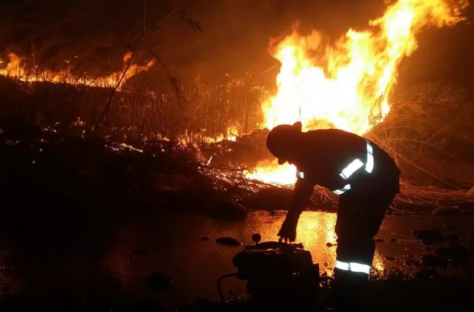 Durante la noche del sábado, la Brigada de Lucha Contra Incendios Forestales, dependiente de la Dirección Provincial de Defensa Civil del Ministerio de Seguridad, recibió la denuncia de un fuego fuera de control que avanzaba por ambos márgenes del Río Del Valle, en la zona de Banda de Varela, quemando cañaveral y arbustos.