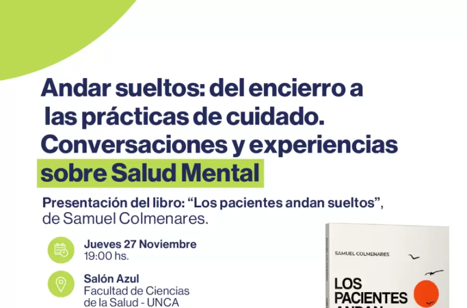 El eje del conversatorio girará en torno a la presentación del libro "Los pacientes andan sueltos", del autor Samuel Colmenares, una obra que invita a repensar los modos en que se han concebido históricamente las prácticas de encierro, el papel de las instituciones y la construcción de nuevas formas de acompañamiento centradas en la dignidad, la inclusión y la autonomía de las personas. El título, provocador y sugestivo, funciona como disparador para debatir cómo las políticas de salud mental deben orientarse hacia modelos comunitarios y de cuidado integral, en línea con los principios establecidos por la Ley Nacional de Salud Mental y los estándares internacionales en derechos humanos.