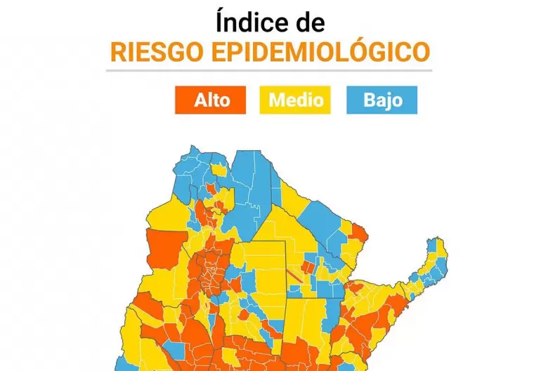 En tanto, en riesgo bajo se consideran los departamentos con una razón menor a 0,8 y una incidencia menor a 50. Según el Ministerio de Salud de la Nación, la nueva fórmula permite tener una idea de la magnitud que está tomando esta segunda ola en el país y cómo, de una semana a otra, casi que se duplicaron los departamentos en la Argentina catalogados como en alto riesgo.