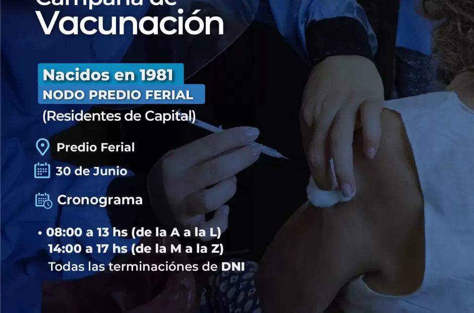 El Plan Operativo de Vacunación Covid-19 avanza con la aplicación de dosis a personas nacidas en 1981 con residencia en la Capital.