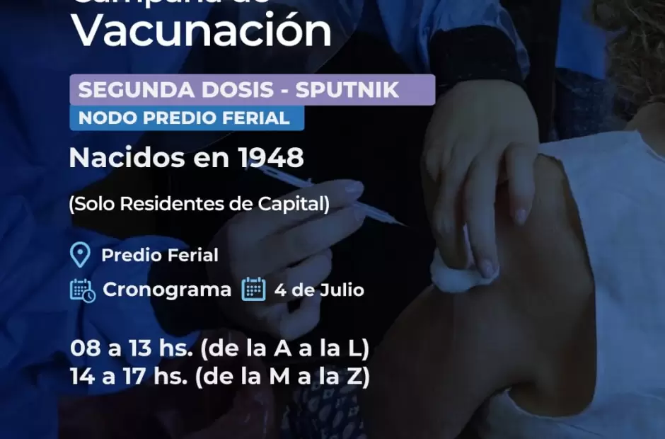 Predio Ferial Catamarca. Clase 1948 (73 años), de 08 a 13 hs. (de la A a la L) y de 14 a 17 hs. (de la M a la Z). Todas las terminaciones de DNI. Solo residente de CAPITAL.