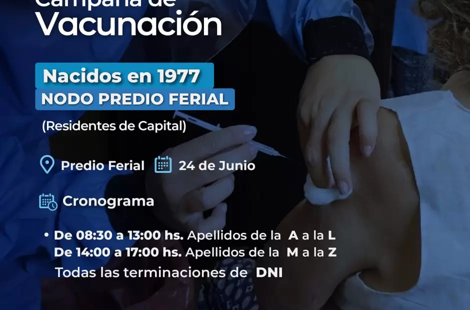 -Nodo Predio Ferial: Predio Ferial Catamarca de 8 a 13 horas (letras A-L) y de 14 a 17 horas (letas M-Z).Todas las terminaciones de DNI. Solo residente de CAPITAL