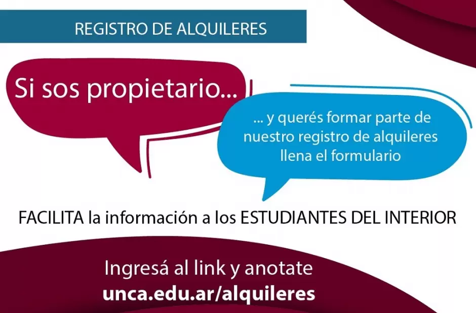 La UNCA, a través de la Secretaría de Bienestar Universitario y Asuntos Estudiantiles, convoca a propietarios de alquileres a sumarse al Registro de Alquileres para Estudiantes, con la finalidad de facilitar el acceso a opciones de alojamientos accesibles y seguros.