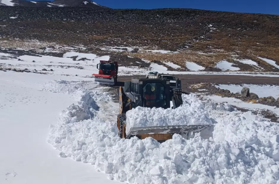 El personal y los equipos viales trabajan sin descanso para remover la nieve acumulada que, en algunos sectores del tramo entre La Gruta y el límite con Chile, supera el metro de altura. Estas condiciones son resultado de las intensas nevadas registradas durante el último fin de semana.