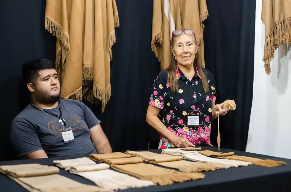 Quienes visiten la Feria Cortázar de la ciudad cordobesa también podrán encontrarse, en la carpa destinada a pueblos originarios y artesanías tradicionales, con la reconocida artesana textil de Fray Mamerto Esquiú, Guillermina Zárate que expone sus delicadas bufandas, ruana y ponchos de vicuña; con la tejedora de Belén, Fátima Zabala Delgado quien desde su stand mostraba la técnica de hilado de vicuña y seda natural, las dos fibras con las que elabora finas prendas textiles.