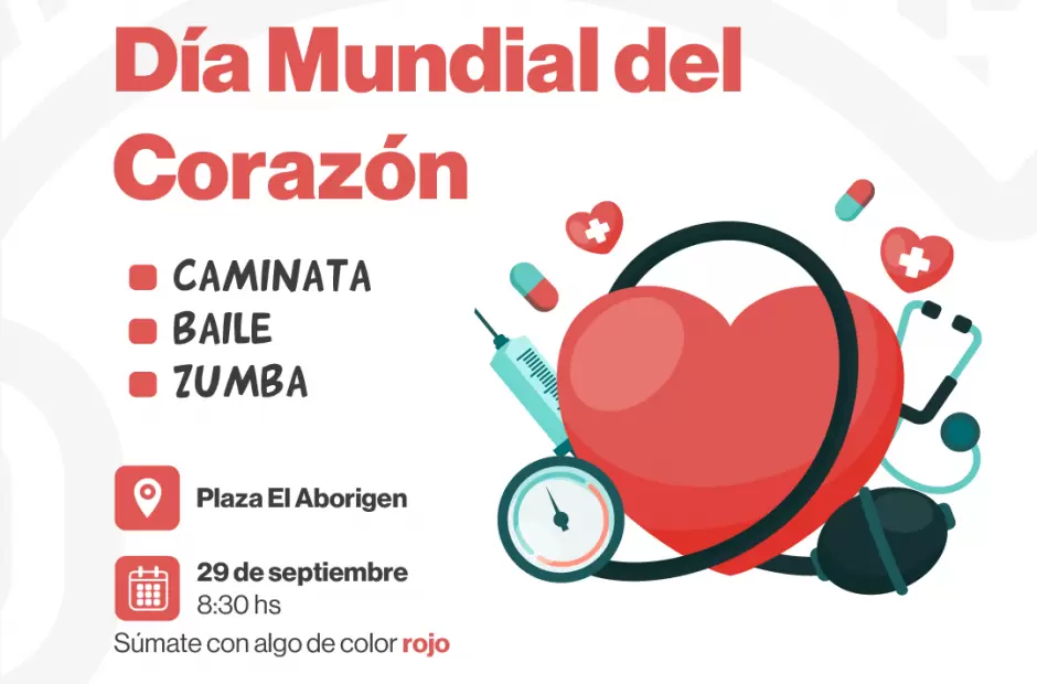 Con motivo del Día Mundial del Corazón, que se celebra el 29 de septiembre, la Dirección de Enfermedades Crónicas No Transmisibles, a través del Programa de Lucha Contra el Sedentarismo, está invitando a toda la comunidad a participar de una jornada destinada a la prevención de enfermedades cardiovasculares.