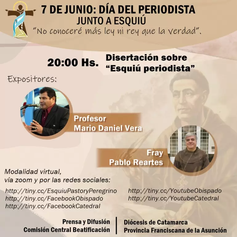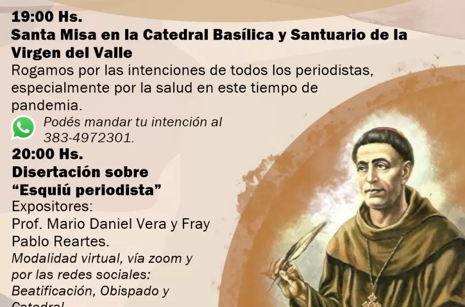 El 7 de junio es el Día del Periodista, y queremos celebrarlo junto al Venerable Siervo de Dios Mamerto de la Ascensión Esquiú, realzando su faceta de periodista, en el camino hacia su pronta proclamación como beato. También queremos hacerlo de la mano de Nuestra Madre del Valle, implorando su intercesión por las intenciones de todos los periodistas, especialmente por la salud en este tiempo de pandemia que nos toca vivir.
