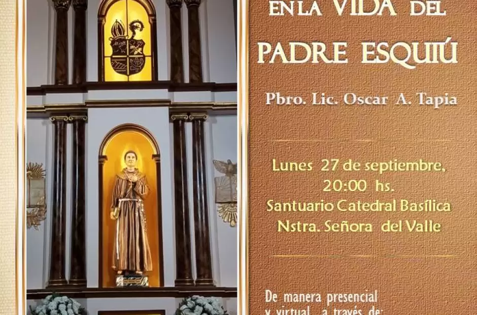 En el marco del Mes de la Biblia, el lunes 27 de septiembre, a partir de las 20.00, se ofrecerá la conferencia sobre “La Biblia en la vida del Padre Esquiú”, en la Catedral Basílica y Santuario del Santísimo Sacramento y de Nuestra Señora del Valle.